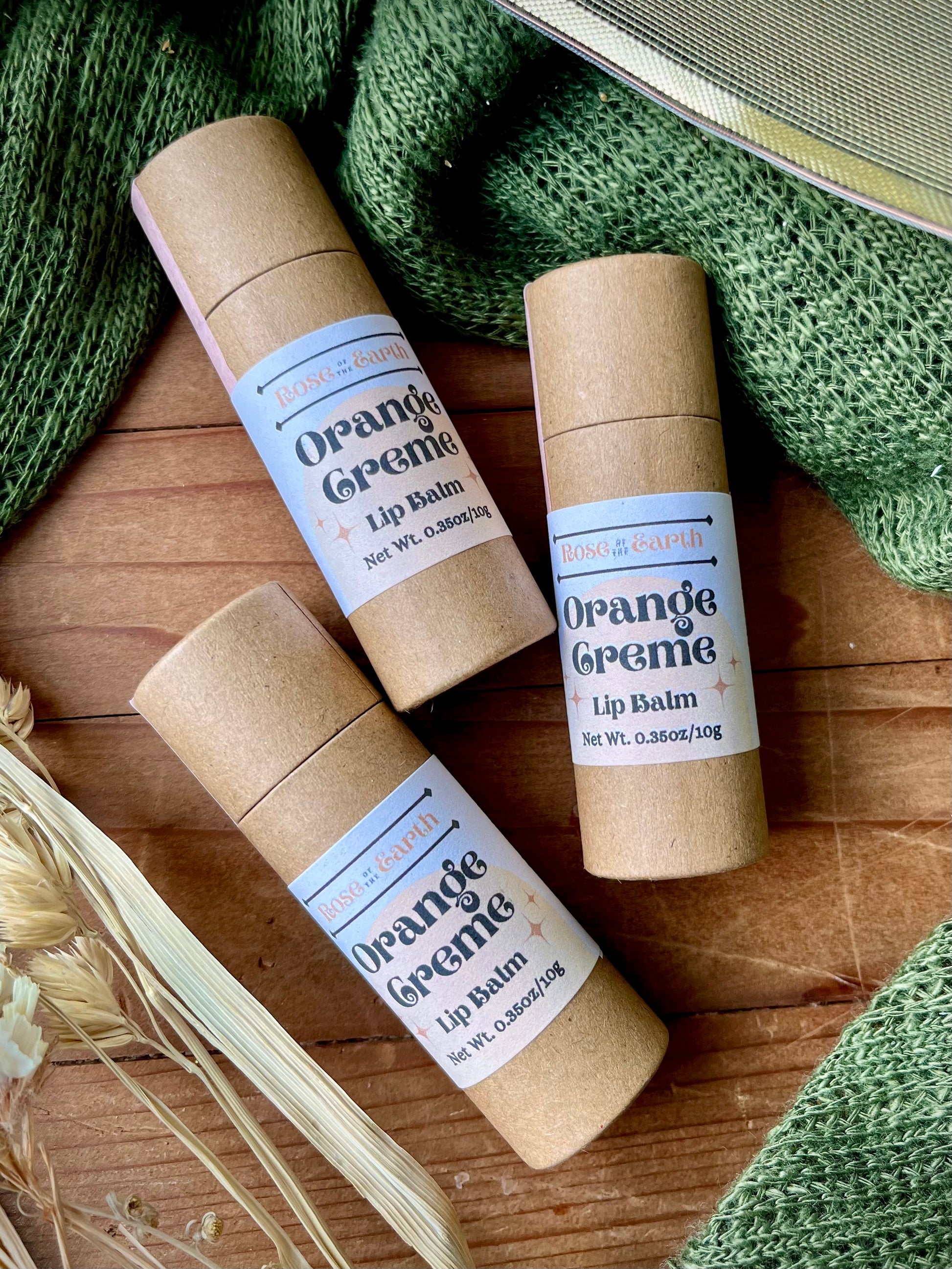 This Orange Crème lip balm features the fresh, bright flavors of orange and vanilla, provided by orange and benzoin essential oils, folded into an ultra lush and moisturizing base of shea butter, cocoa butter, apricot kernel oil, castor oil, and beeswax to create a lip balm that is an absolute treat for your lips! All of our lip balms come in generously sized eco-friendly paperboard tubes with labels made from recycled paper, and the entire packaging is compostable.